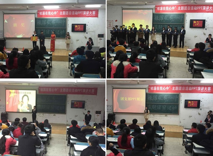 11月29号,物电学院在9T1举行“祖国在我心中”主题团日活动。物电学院学生会主席赵洋、团总支副书记陈煜邀请了美术学院、化工学院、政法学院部长副部长一道担任了活动评委,物电学院第六届团学分会委员出席了活动。此次比赛采用PPT演讲的方式展示支部践行社会主义核心价值观所做的工作。