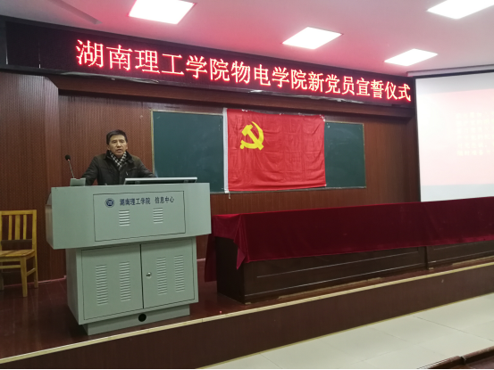 2018年1月12日下午,物电学院2017年下半年新发展党员宣誓仪式在物电楼学术报告厅举行。出席本次会议的有院党总支书记罗文华同志、物理学专业学生党支部书记何小娅、电子专业学生党支部书记张恒道、全体新发展党员、16级入党积极分子。