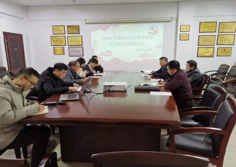 2020年12月29日上午,物电学院于6205会议室召开2020年度党支部书记党建述职评议考核会议,我院兼职组织员张剑桥、党委书记罗文华、院长李宏民、党委副书记张陈武,学院全体教师、学生党支部书记参加会议。