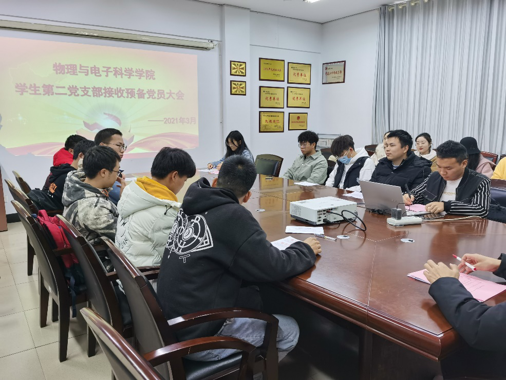 至此,物电学院学生第二党支部接收预备党员大会圆满结束。本次会议,强化了学生党员的思想意识,推动了学院基层党建工作向前迈进,同时,也为学生第二党支部充分发挥党支部职能提供了良好的“动力保障”。