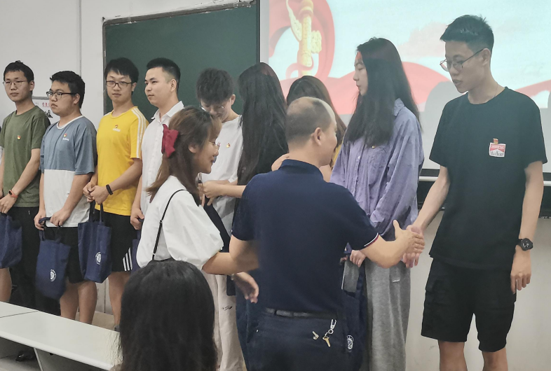党课结束后,党委书记周畅、副书记张陈武、学生第二党支部书记严胡伟向毕业生党员发放“信仰”礼包。周畅深情地对同学们说道:“希望毕业生党员能够继续‘不忘初心,牢记使命’,以党章为本,同信仰为伴,继续积极学习和弘扬党的先进思想理论,展现出一个良好的大学生党员的精神风貌”。