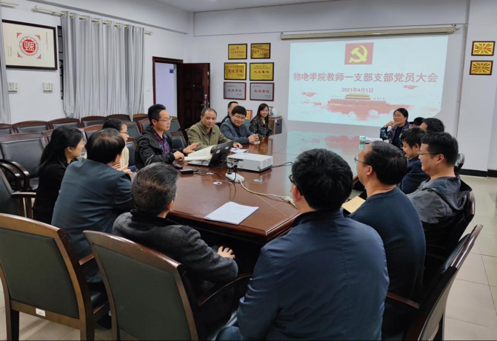 2021年4月1日下午,物理与电子科学学院教师第一支部全体党员响应学习号召,于6205会议室召开了开展党史学习教育专题学习会议,学院党委书记罗文华、支部书记李科敏参加会议,会议由支部副书记邹志军主持。