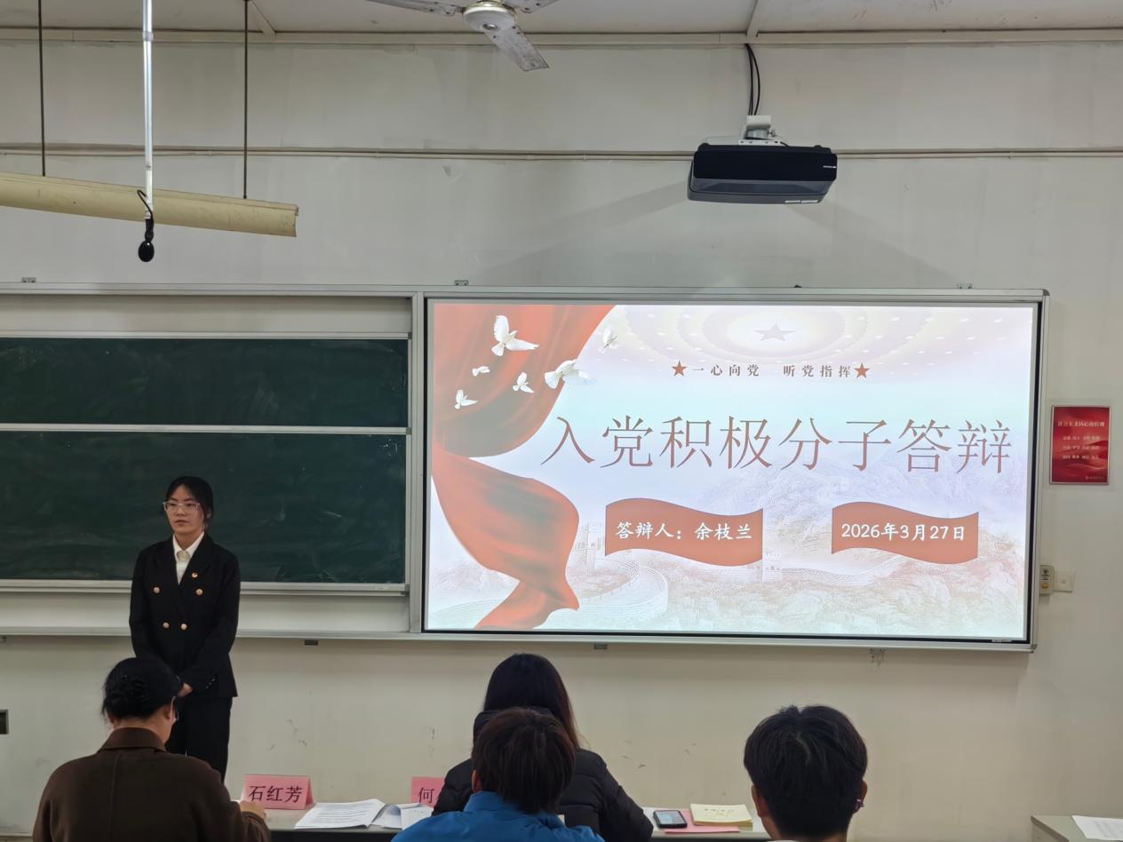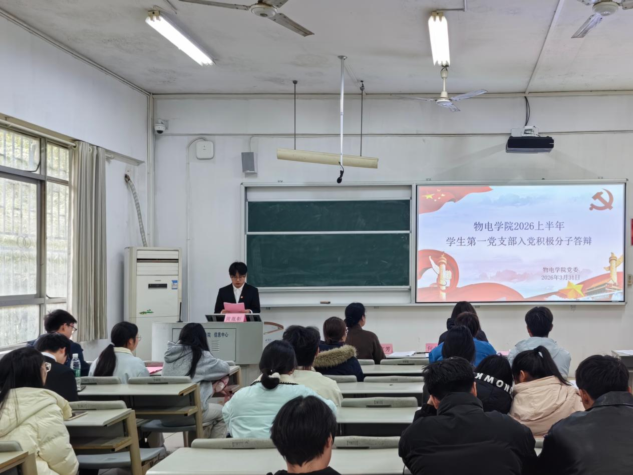3月31日,物电学院学生第一党支部在6111教室开展2026年上半年入党积极分子答辩会,院党委副书记石红芳、教师第一党支部副书记何小娅担任评委,学生第一党支部全体学生党员及入党积极分子参会。