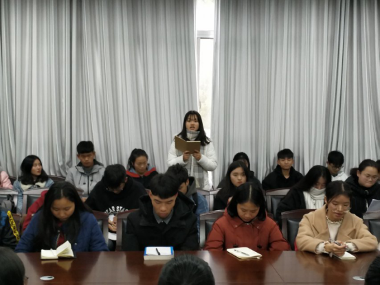 为了加强团学干部与干事之间的团结合作精神,协调好各部门工作。2018年12月6号中午十二点,物电学院在6205召开了第九届团总支学生分会第二次干部干事例会,会议由团总支副书记黄瑞主持,团学的主席团和所有部长、干事参加了本次会议。
