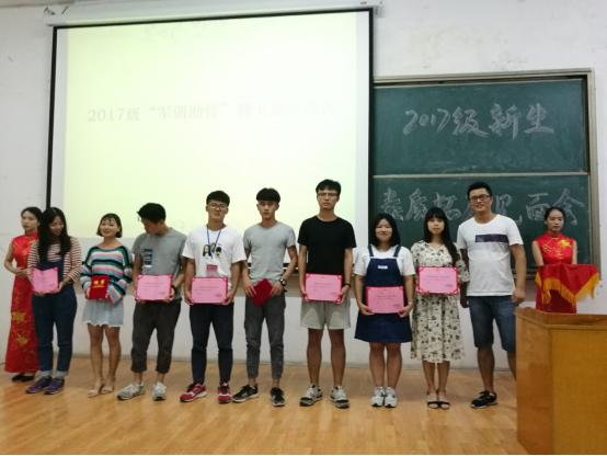 会议共有5项议程。首先由张恒道老师向17级“军训助管”颁发聘书,对他们的付出表示肯定。第二项议程由学生会主席李泽鹏介绍团学的基本情况。李泽鹏学长通过自己从干事到主席的感受,向17新同学展现了一个和谐友爱的团学大家庭,并期待新鲜血液的加入。第三项议程是各部门部长顺序上台,通过精美的PPT和生动的演讲清晰的展现了每个部门的主要工作与活动。