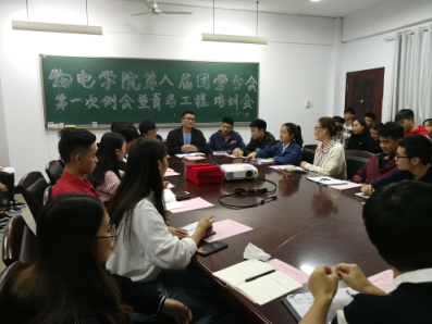 10月24日晚七点,物电学院团总支在6205会议室召开第八届团学分会第一次全体干部干事例会暨青马工程培训会。物电学院团总支书记张恒道、第八届团学分会全体委员和干事参加了此次会议。