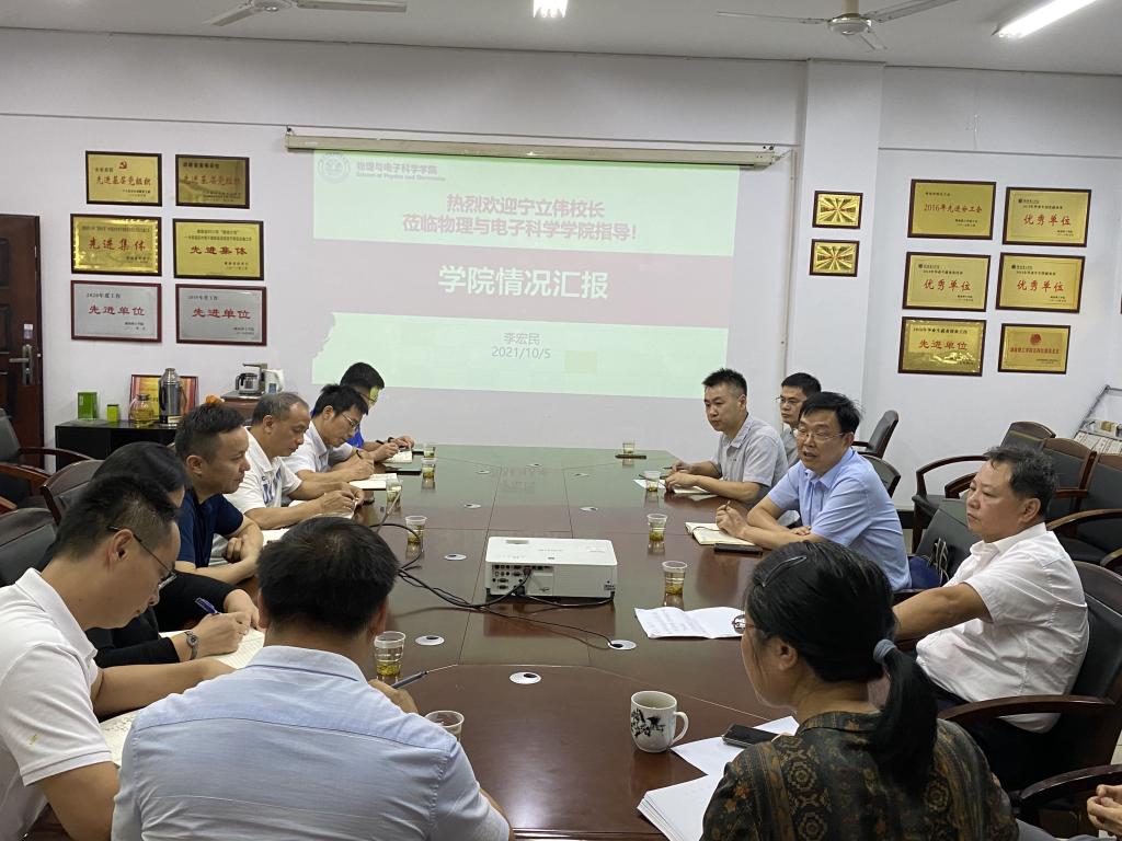 10月5日下午,校党委副书记、校长宁立伟在物电学院就学科与专业建设及财务使用与公开等内容开展调研,学校总会计师汤福球、计财处处长刘大尚陪同。学院党政领导班子及教师代表参加调研座谈。