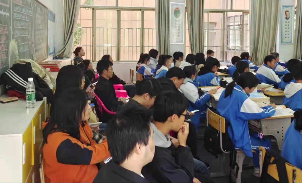 魏勇一行在云梦中学听实习生上课
