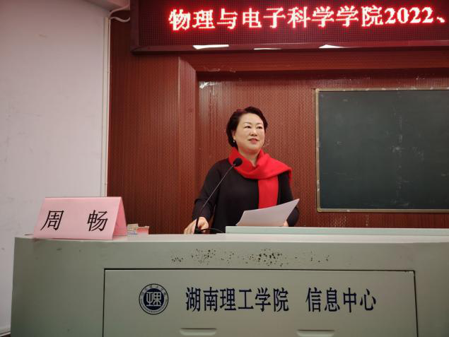 2024年1月5日上午,物电学院在南院6号教学楼学术报告厅举行2022、2023年度院长奖学金颁发仪式(首次颁发)。院领导周畅、李宏民、李科敏、魏勇、邹志军、罗良、李昶,全体辅导员和班主任出席,100多名学生代表参加,周畅主持。