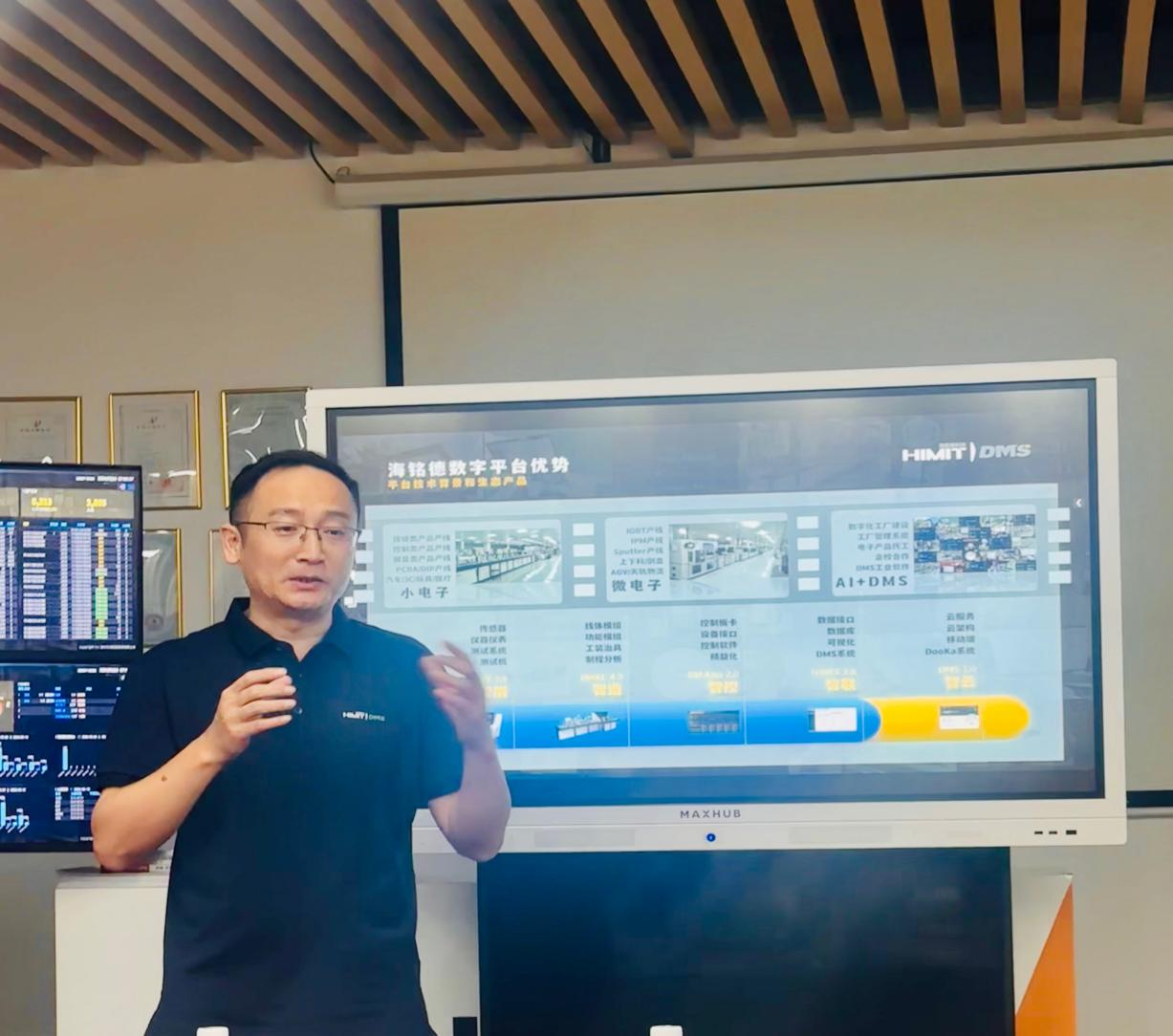校友黎鹏向母校老师介绍企业情况