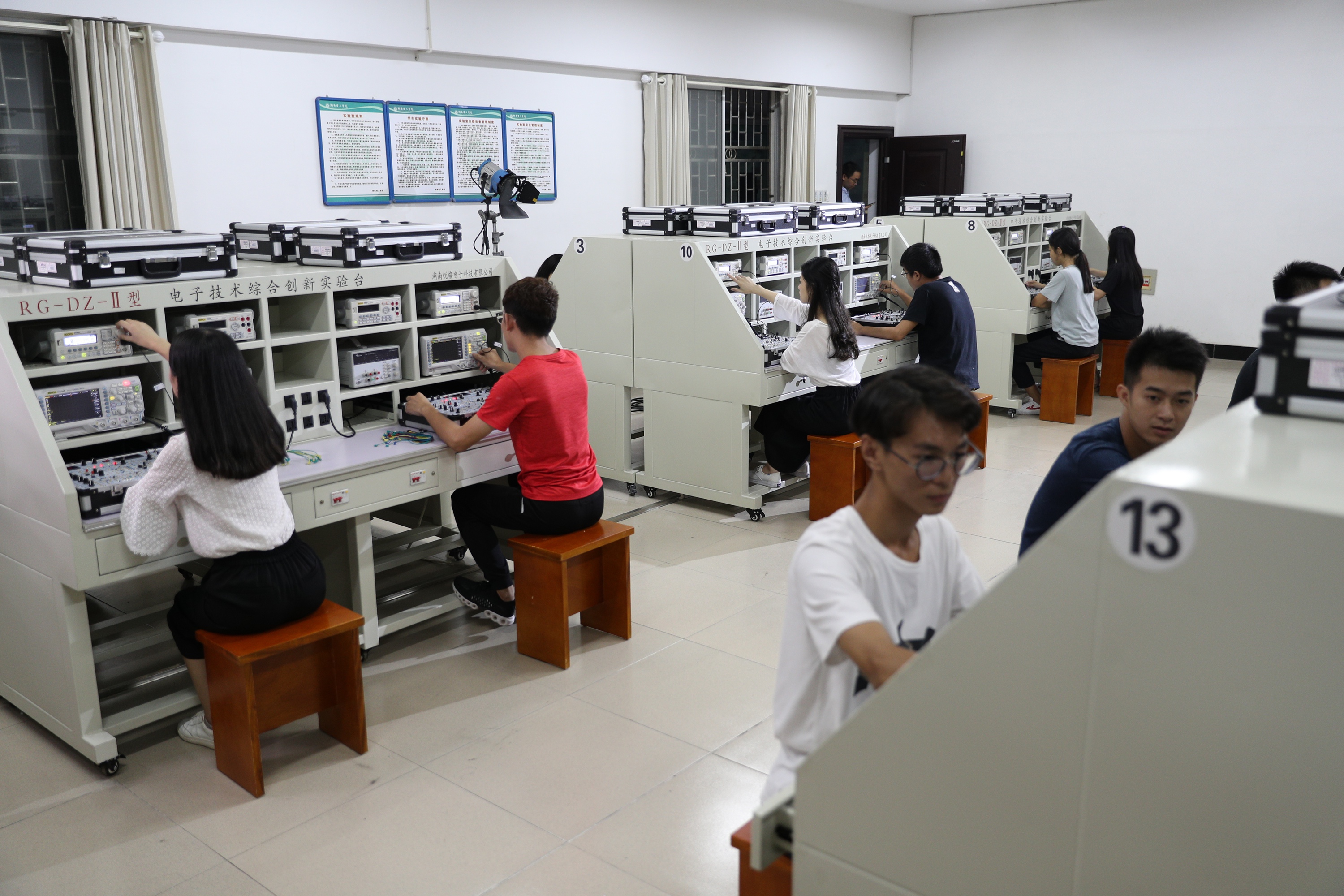 (物理与电子科学学院学生在开展电子技术综合实验。)