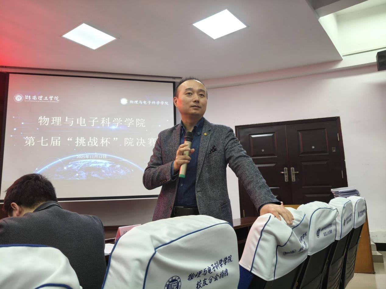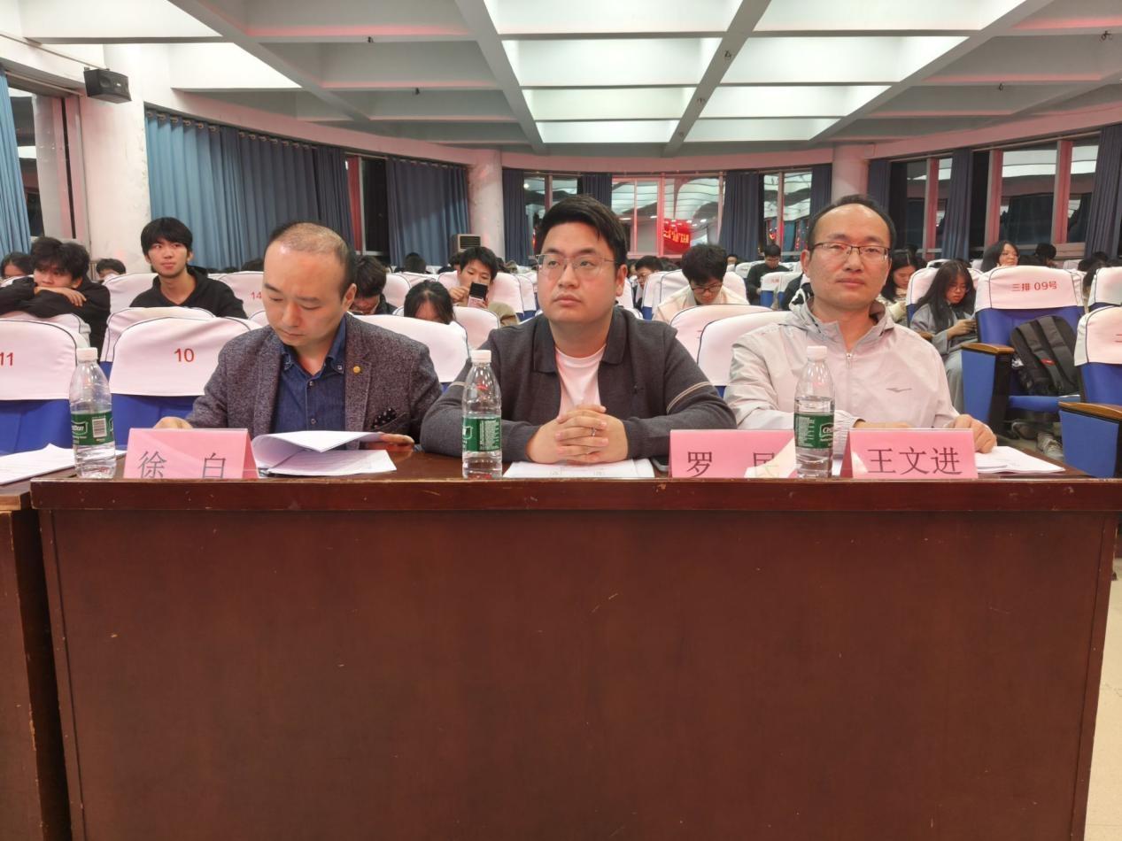11月12日晚,物理与电子科学学院在六栋学术报告厅举办第七届“挑战杯”院级决赛。王文进、徐白、罗民三位博士担任评委,邓捷主持。