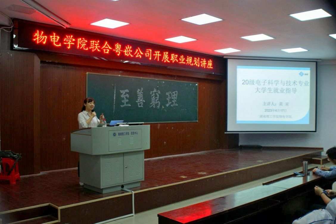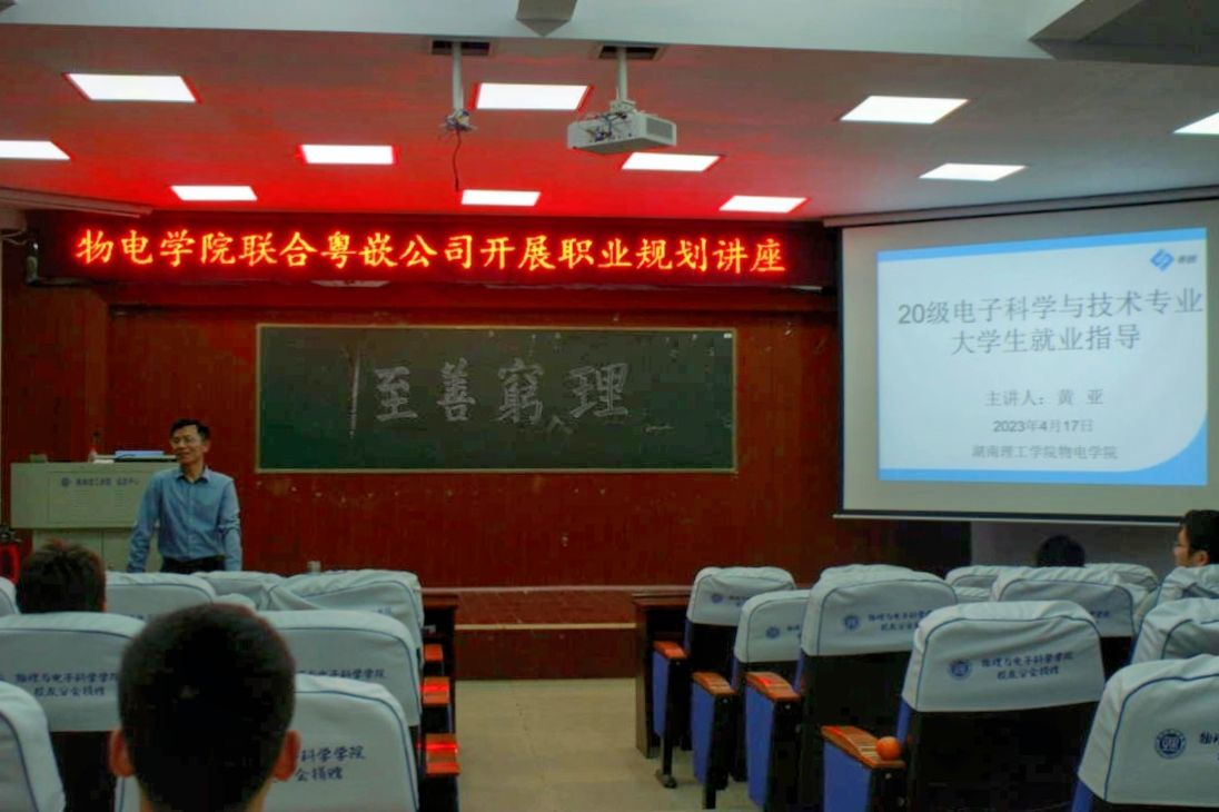 为帮助同学们了解所学专业及其就业前景,提前认识到职业规划的重要性,4月17日晚,粤嵌科技于物电学院学术报告厅作20级电子科学与技术专业职业规划讲座,物电学院副院长魏勇,校企合作负责人朱景林,粤嵌科技就业负责人黄亚主讲,20级电子班同学参加。