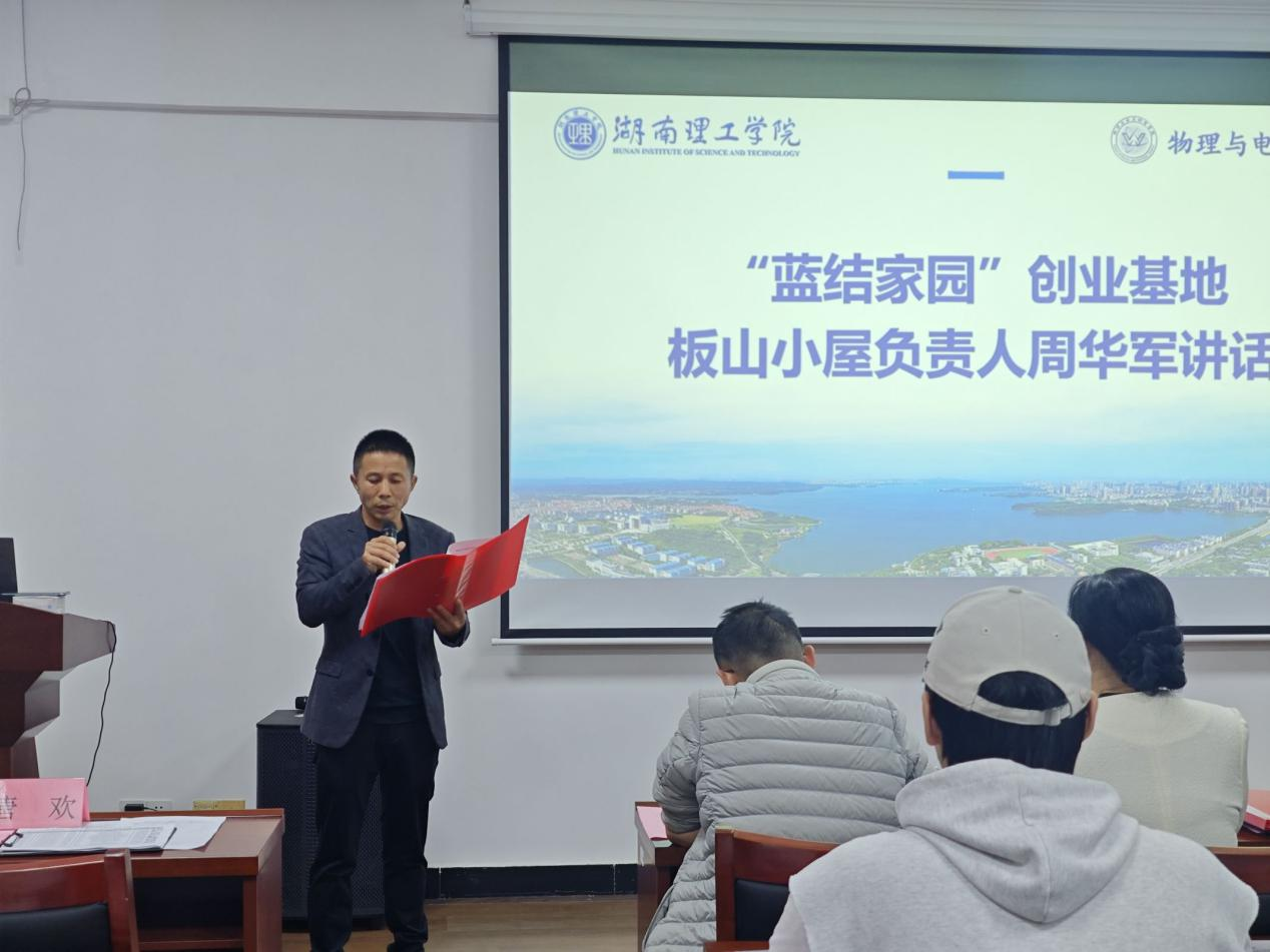 蓝结家园”创业基地板山小屋负责人周华军分享了自己的创业故事,希望大学生有家国情怀,积极追求自己的价值,一个有理想有作为为社会创造价值的人
