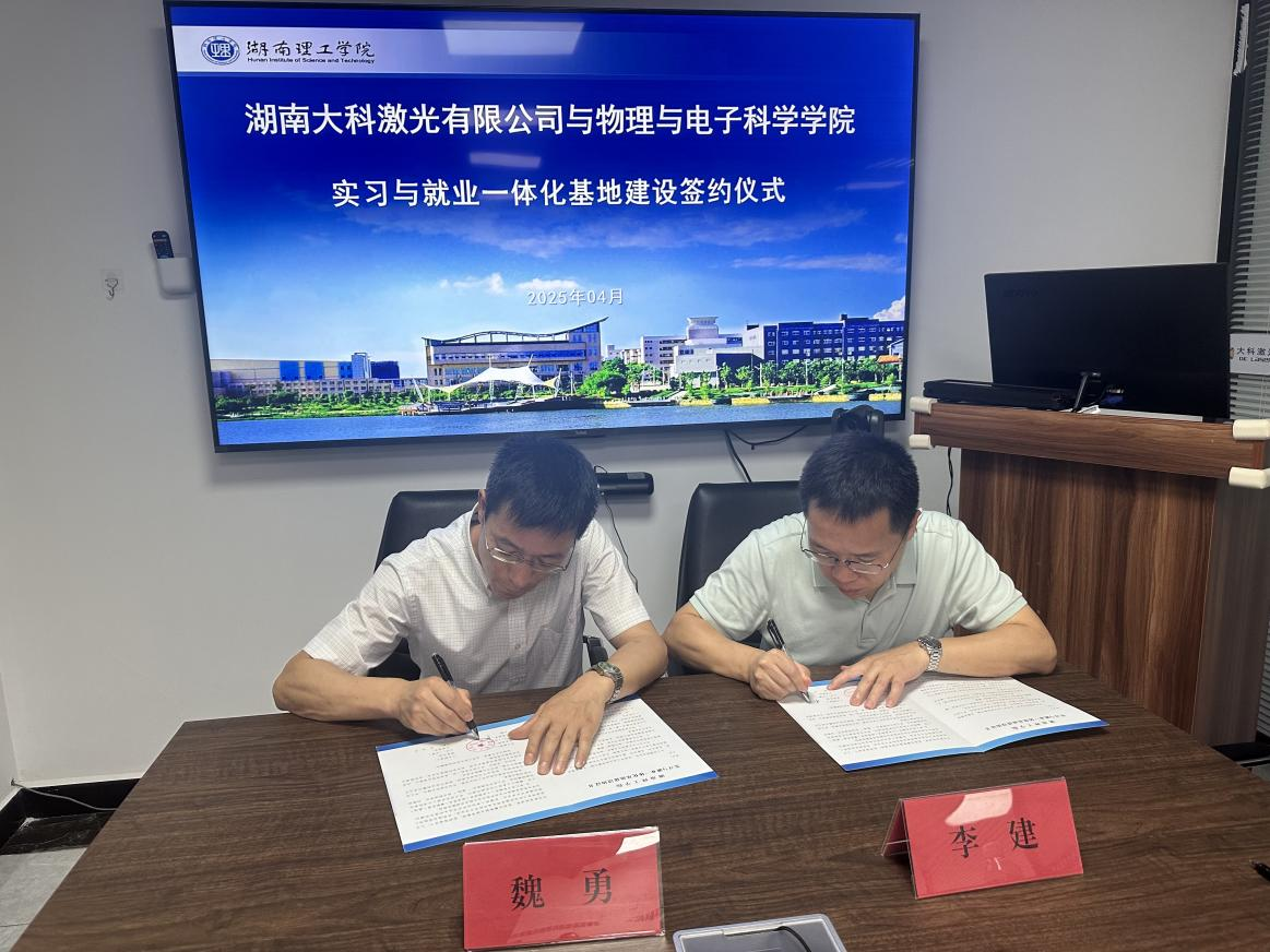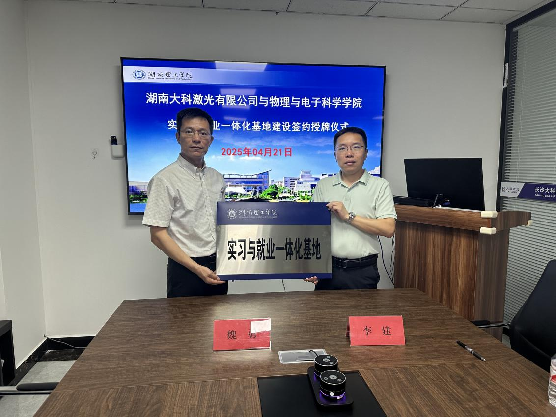 4月21日上午,物电学院党委委员、副书记、院长(主持工作)魏勇、副院长邹志军和就业专干李哲君一行赴湖南大科激光有限公司,开展实习与就业一体化基地授牌和“访企拓岗促就业”活动。湖南大科激光有限公司李建等相关负责人参加。