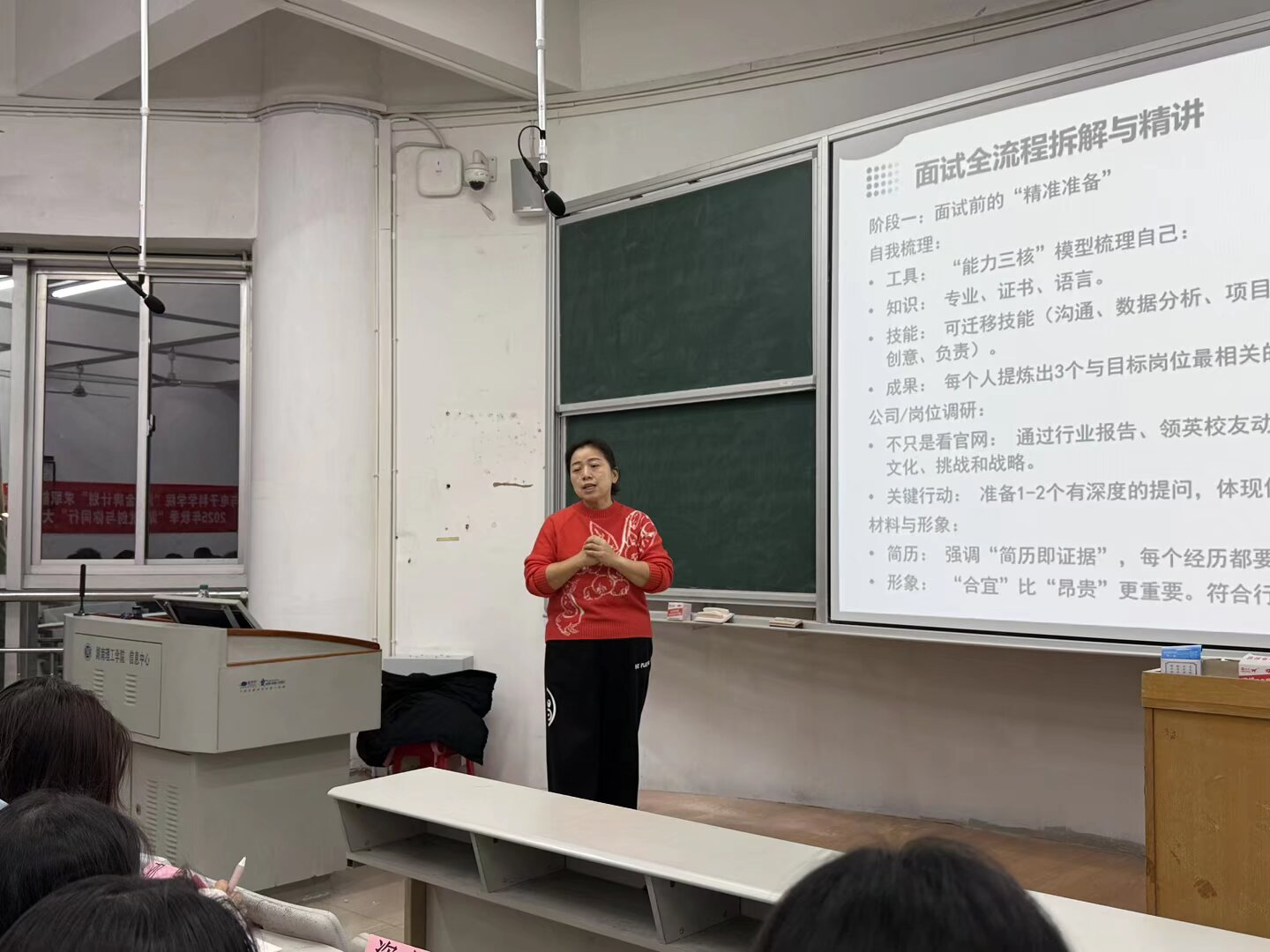 12月4日,物电学院承办的“湖鲤金牌计划”求职能力训练营活动第三讲在62T2教室开展,本次活动主题为“求职面试与简历制作”。