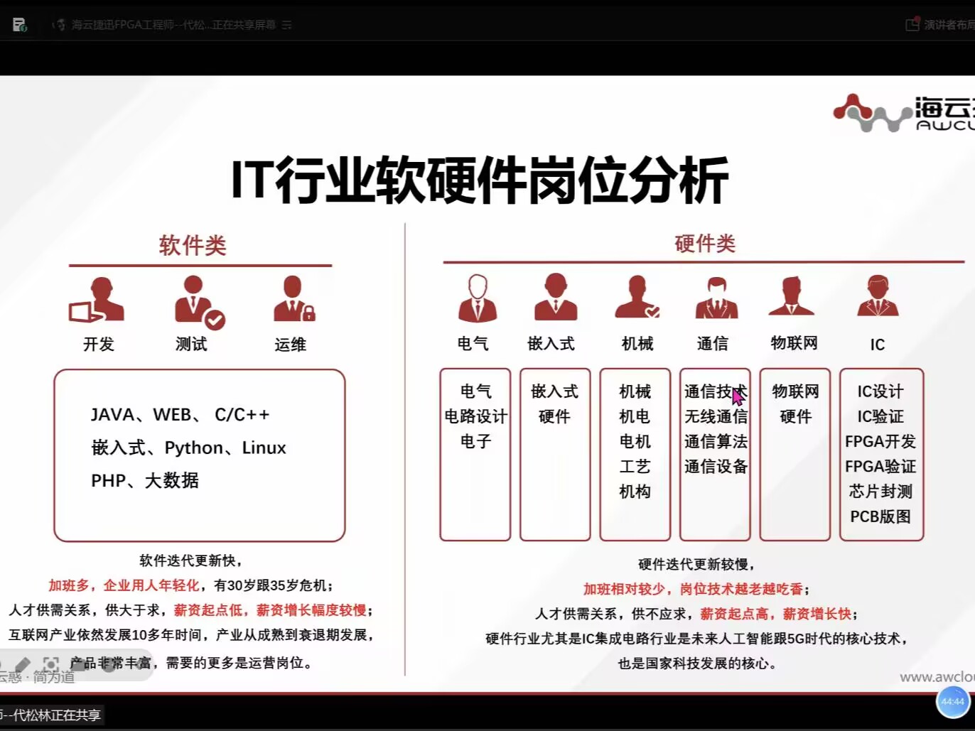 代松林还针对FPGA相关岗位如数字IC设计、芯片验证、现场应用工程师等的发展路径与技能要求展开说明,引导学生通过参赛提升工程实践与创新能力。