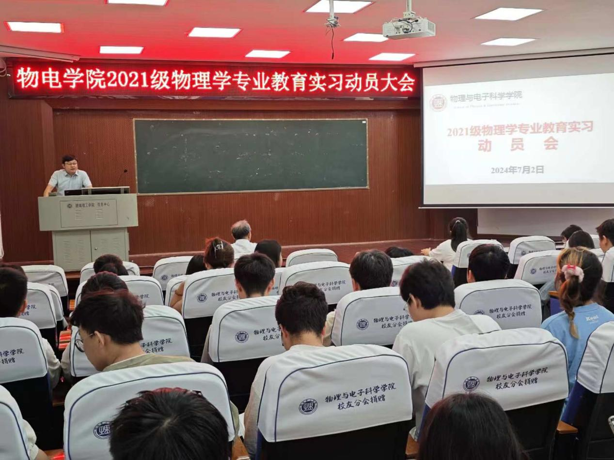 7月2日上午,物电学院在物电楼学术报告厅召开2021级物理学师范生(免费师范生)教育实习动员大会,副院长罗良博士、院党委委员李科敏教授、李奇云老师,以及全体2021级物理学专业学生参加。