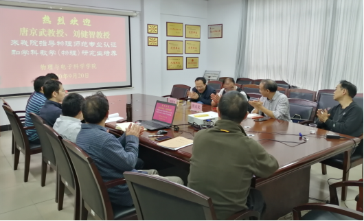 上午9点,研讨会正式开始。李科敏教授首先隆重介绍了刘健智教授和唐京武教授,并代表物电学院对他们的到来表示热烈的欢迎。