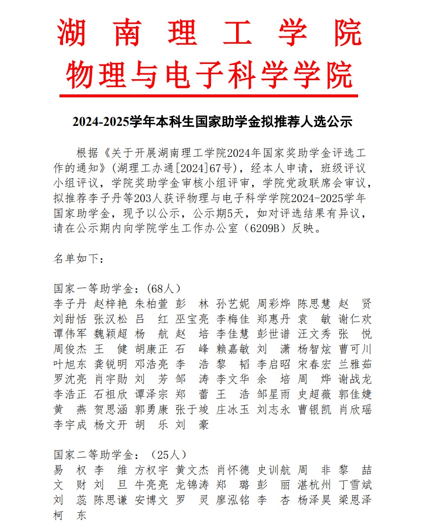 下一页:WilliamHill中文官方网站物理与电子科学学院2023-2024学年本科生国家励志奖学金拟推荐人选公示
