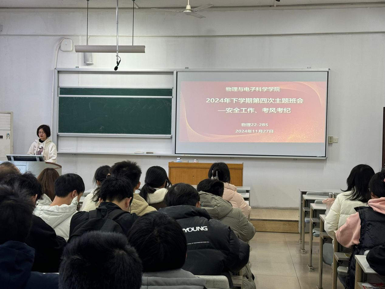 近日,物电学院各班级召开本学期第四次班会。班会由各班班主任主持,各班全体同学参加。