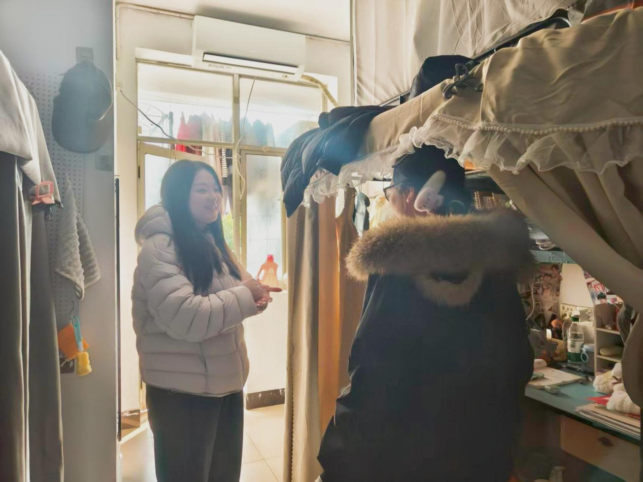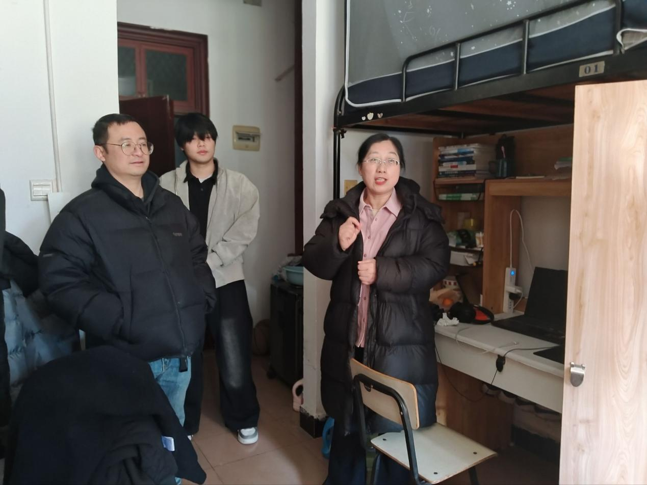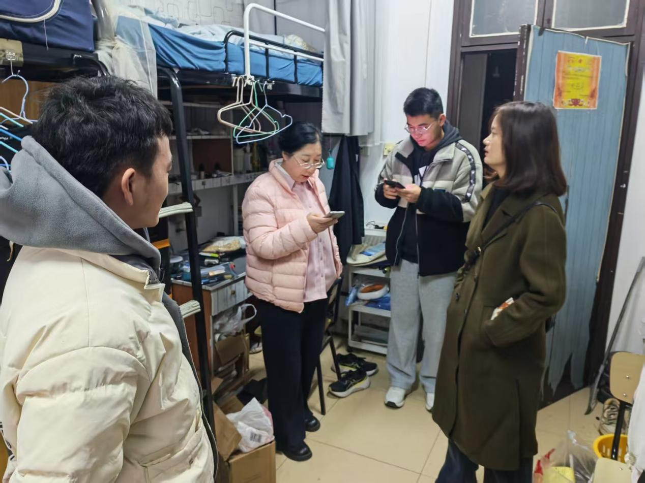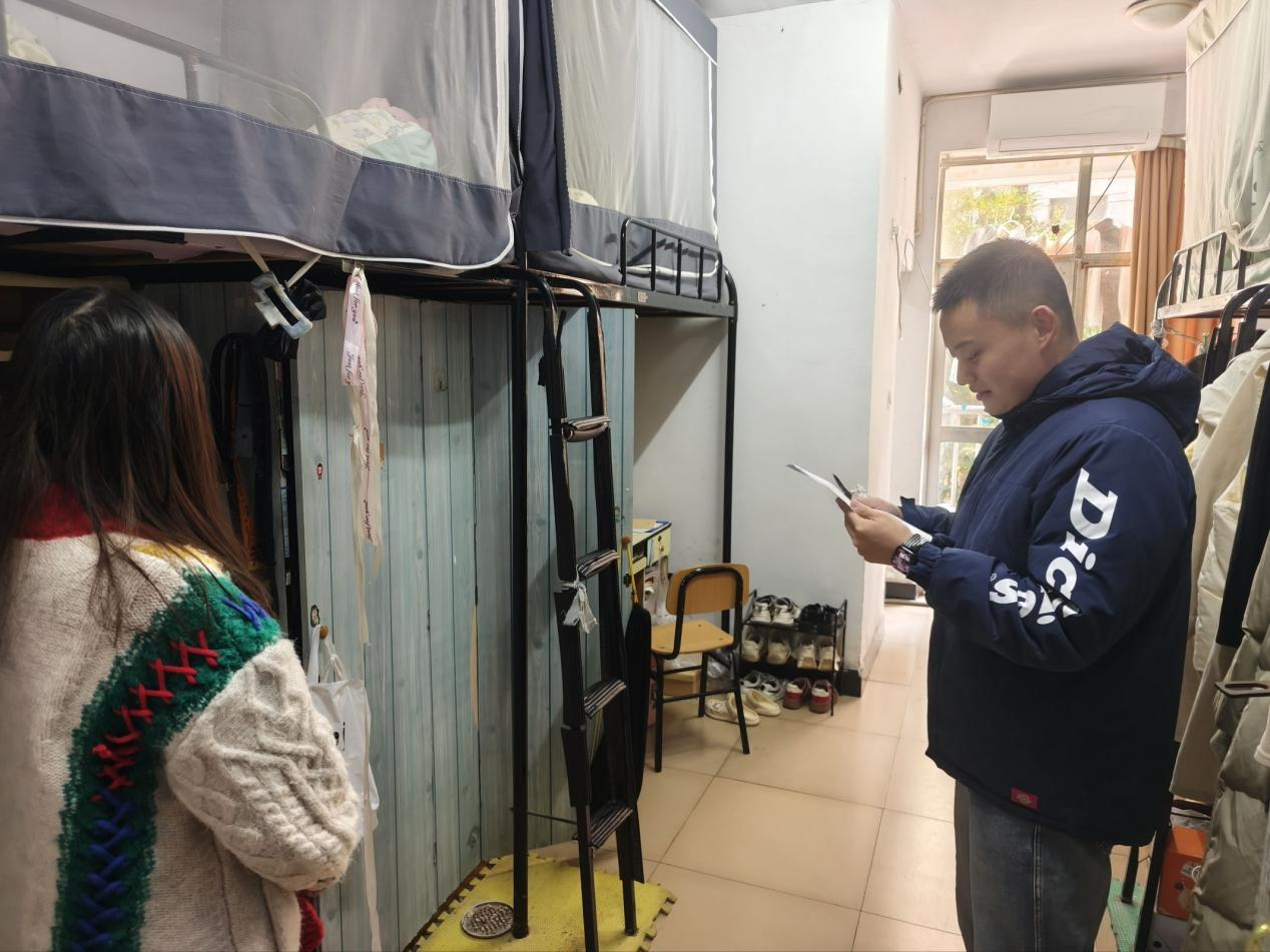 走访过程中,老师们详细询问学生期末备考进度与心理状态,叮嘱大家合理规划时间、劳逸结合,以良好心态迎接考试。同时,重点开展消防安全排查,严查违规使用大功率电器、私拉乱接电线等隐患;针对电信网络诈骗高发态势,结合典型案例警示学生提高警惕。此外,还细致叮嘱寒假离校注意事项,强调关闭电源、锁好门窗、妥善保管财物及出行安全等要点。